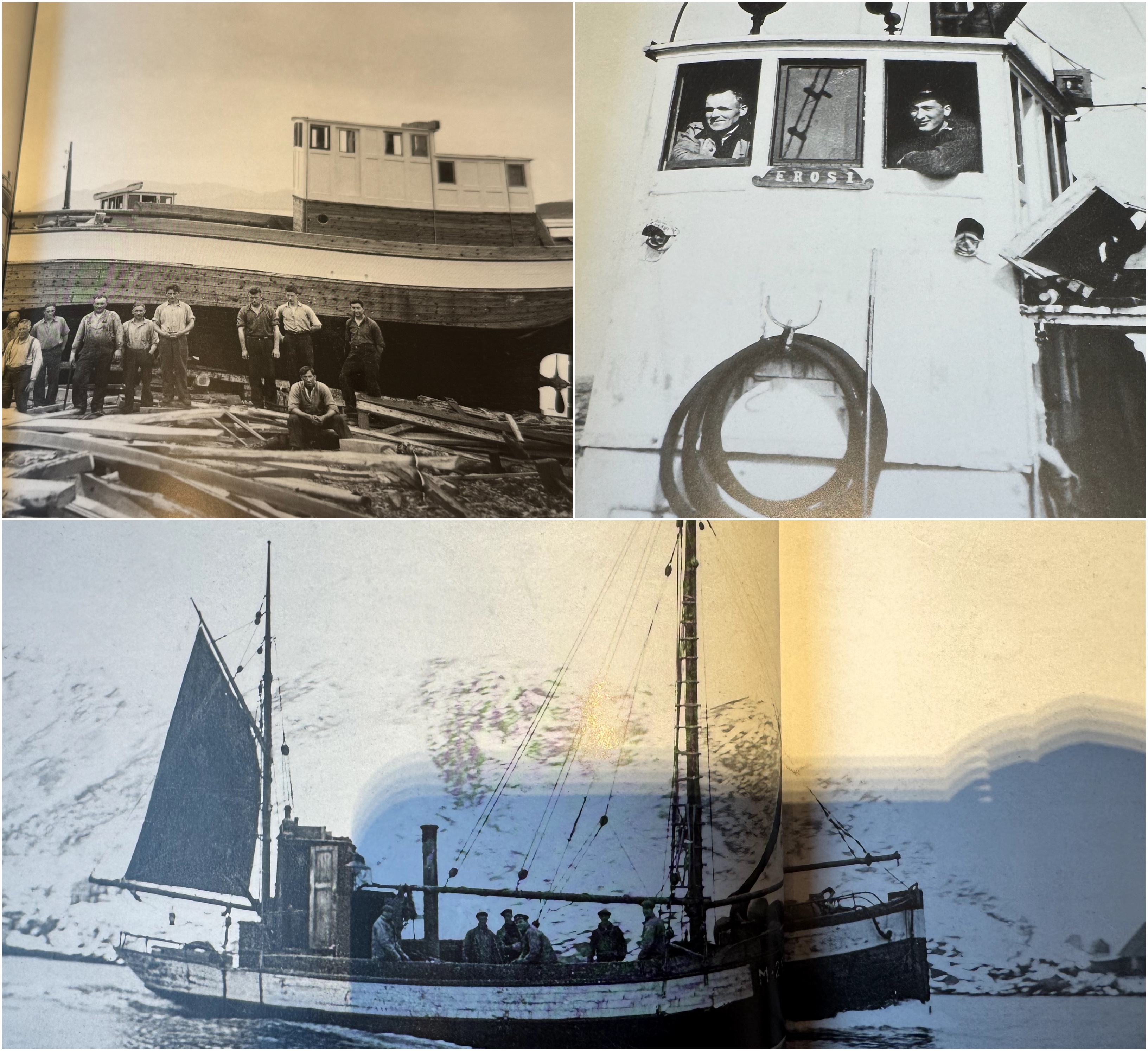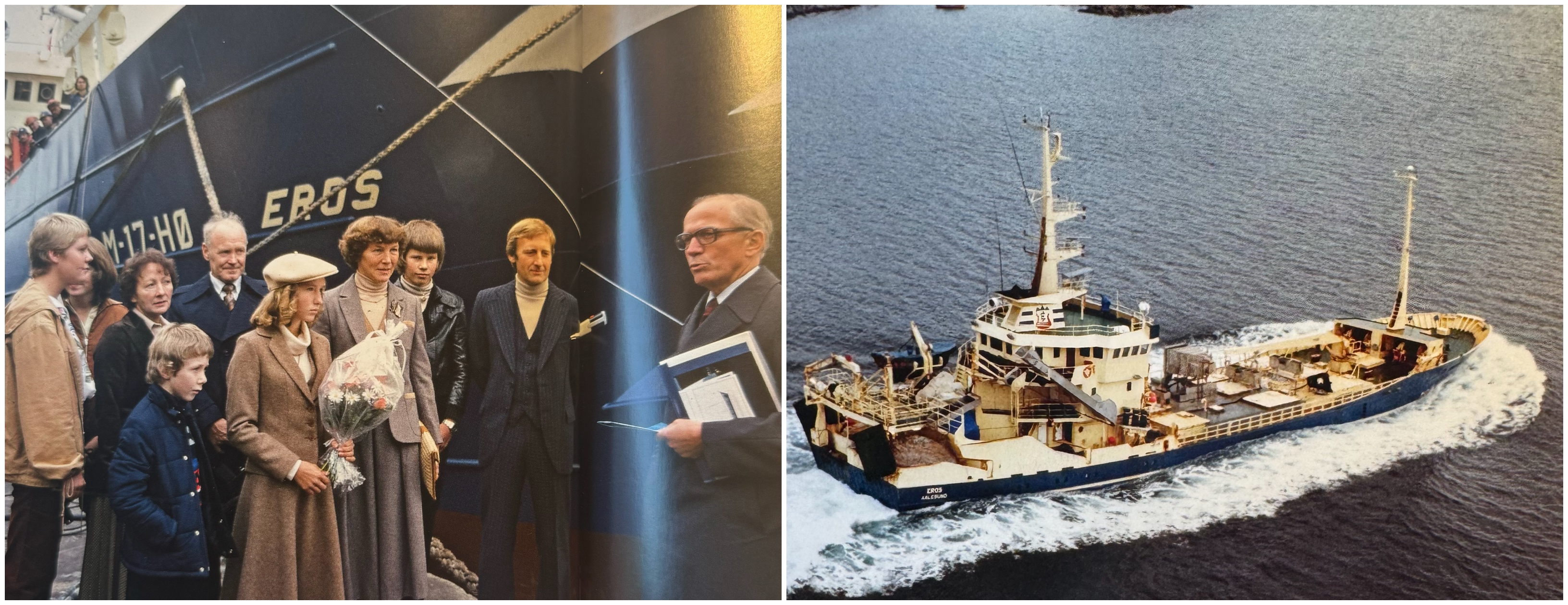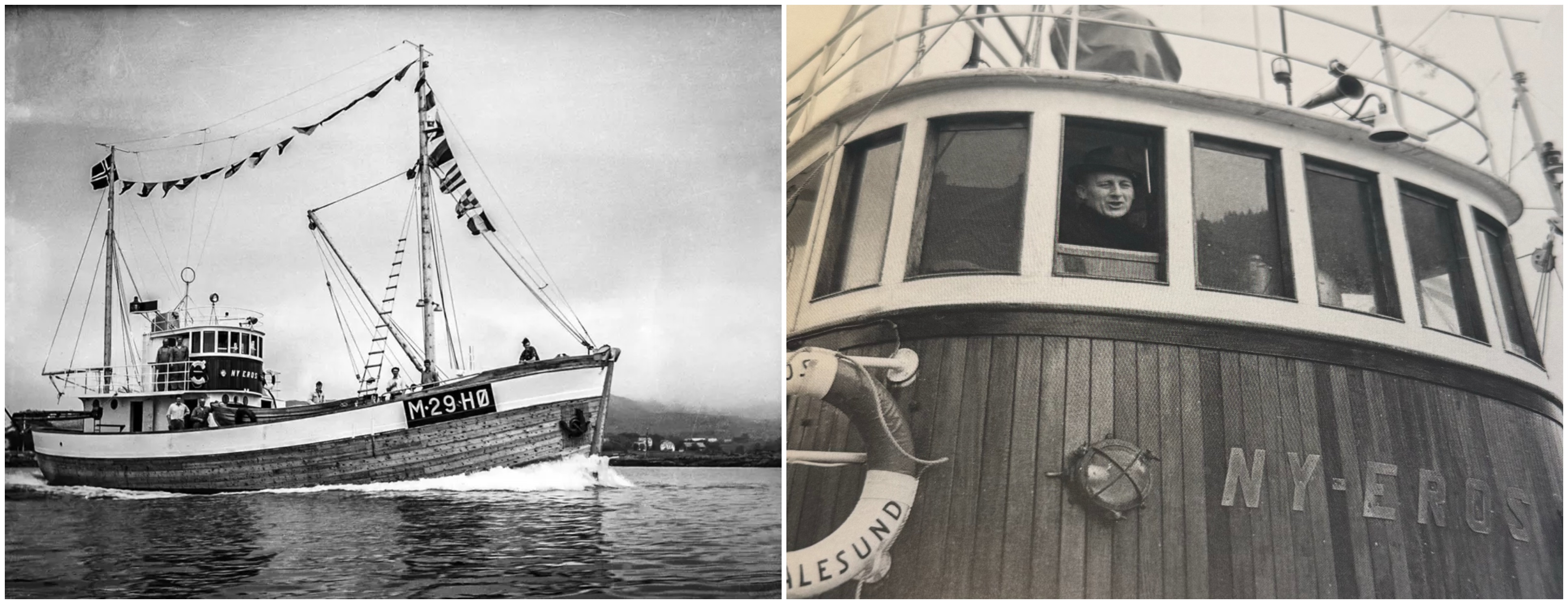 I 1915 kom en splitter ny og moderne fiskebåt til Eggesbønes, som fikk navnet EROS. Den ble bygd ved Bolsønes skipsbyggeri rett utenfor Molde. Seks karer på Eggesbønes gikk sammen om å kjøpe båten. I ettertid er det dog Peder Eggesbø, Lars Eggesbø og Kornelius Pedersen man regnet som de aktive eierne. Noen år senere kom også Johannes Eggesbø, broren til Peder, inn som aktiv reder. Eros, som var 48 fot lang og hadde en motor på 22 hestekrefter, ble bygd i ei tid da det var stor optimisme blant fiskerne i Herøy og ellers langs kysten. Lett å få lån i bankene og folk såg optimistisk på fremtiden. Det er også verdt å nevne at fisket gikk gjennom en teknisk revolusjon tidlig på 1900 tallet. Motoriseringa av fiskeflåten på Sunnmøre ble i hovedsak gjennomført fra 1904-1916. Overgangen til motordrift markerer det største omskiftet og det største fremskrittet som har vært i fiskeriene. Eros, som hadde en lastekapasitet på 200 hektoliter, drev fra første stund fiske med garn etter sild og torsk. Om sommeren dreiv dei med linefiske på bankane. De første årene båten var i drift var det utrolig gode år med godt fiske og det sammenfalt med veldig gode priser på fisken. Etter noen gode år kom det noen veldig dårlige år etter 1. verdenskrig. fiskeriene og fiskerne var trolig den næringa og yrkesgruppa som ble hardest ramma av krisene i mellomkrigstida. Eros fikk selvfølgelig også merke de harde tidene. Til tross for økonomisk trange tider for Eros ble det alltid satt av litt penger til nyinvesteringer. Det var også flere år der det var vanskelig å finne torsk. Eros – rederiene hadde tidlig planer om å prøve andre fiskefelt og fangste på nye fiskeslag. For å kunne gjøre dette måtte dei forlenge Eros og sette inne større motor. I 1931 satt dem inn en ny motor på 50 hestekrefter – omtrent det dobbelte av den dei skifta ut. Et konjunkturomslag gjorde at tidene ble bedre rundt midten av 1930 årene. Næringen utviklet seg når det gjaldt både fangst, foredling og organisering. 1936 ble eros forlenga til 61 fot og fikk blant annet nytt overbygg. Dei påkosta seg sildenot som ble brukt til å fiske sommersild, og dei dreiv også håbrandfiske som gjorde at Eros nå hørte til den havgående fiskeflåten. Under 2. verdenskrig ble det så klart tyngre tider. Tyskerne la opp strenge regler for hvordan fisket skulle foregå, og var nådeløse på dette. Tyskerne rekvirerte også mange fiskebåter og brukte dem i krigstjeneste. Eros rederiet var heldige og hadde fått beholde båten under krigen så det tok ikke lang tid før fisket var oppe og gikk slik som det gjorde før krigen. I 1947 satte eros inn en ny og sterkere motor – en Wichmann på 120 hestekrefter. Dette gjorde at Eros kunne gå lenger til havs. Det var et steg i riktig retning mot helårsdrift. Tidlig i 1950 årene begynte eros-rederiene å legge planer for kjøp av ny båt. Etter å ha hatt Eros i over 40 år solgte de den i juni 1956 til et rederlag i Haram. Aas båtbyggeri på vestnes fikk oppdraget med å bygge «Ny-Eros».